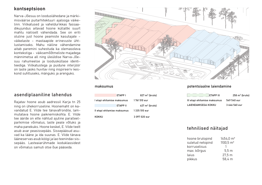 School and kindergarten A creative district Sport complex for the university Narva-Jõesuu kindergarten Villa near the sea Reconstruction of the private house Private house Private house in Sweden Visualisation of semi-detached house 6x6 meter apartment ECO shop Car service centre Urban space of the main street in Narva Sketches throughout the years